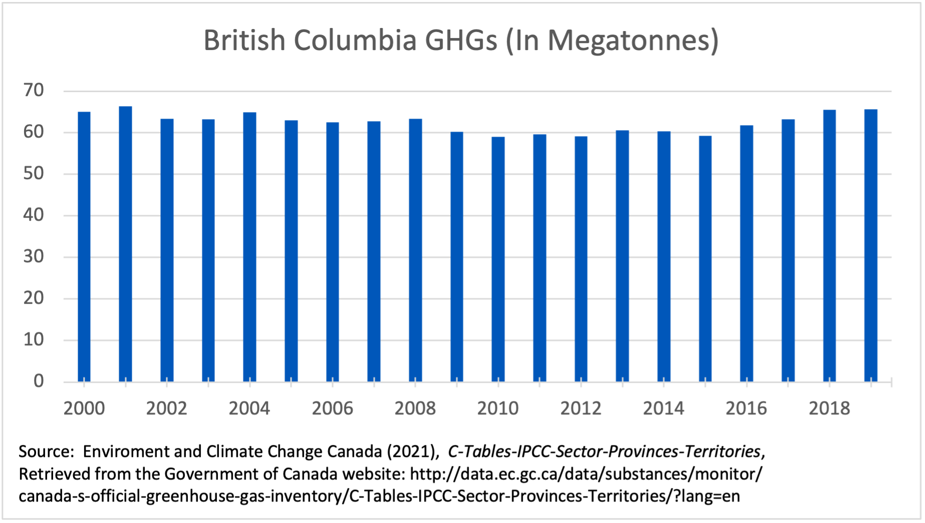 Here, for the record, is a chart of B.C.’s greenhouse gas emissions over the last 20 years (up to 2019, the last year for which we have data).